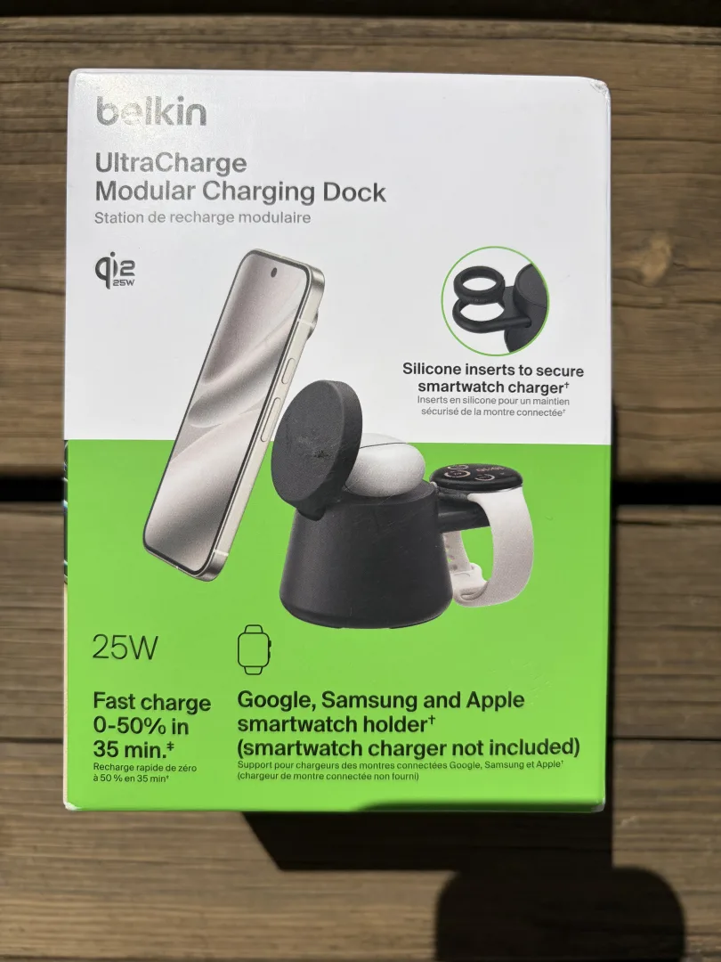 Depuis des années, les stations de recharge 3-en-1 sont quasi systématiquement pensées pour l’écosystème Apple : un pad MagSafe pour l’iPhone, une surface pour les AirPods, et un puck propriétaire pour l’Apple Watch. Si vous mélangez les marques, vous vous retrouviez soit à acheter plusieurs accessoires, soit à vous accommoder d’un dock partiellement inutilisable. Annoncée au CES 2026 et disponible depuis le début d’année, la station de recharge modulaire Belkin UltraCharge (modèle WIZ052) tente d’apporter une réponse concrète à ce problème avec une approche modulaire inédite. Nous l’avons utilisée au quotidien pendant plusieurs semaines, avec un iPhone 17, des AirPods Pro 2e génération et une Apple Watch, pour vous donner notre avis.