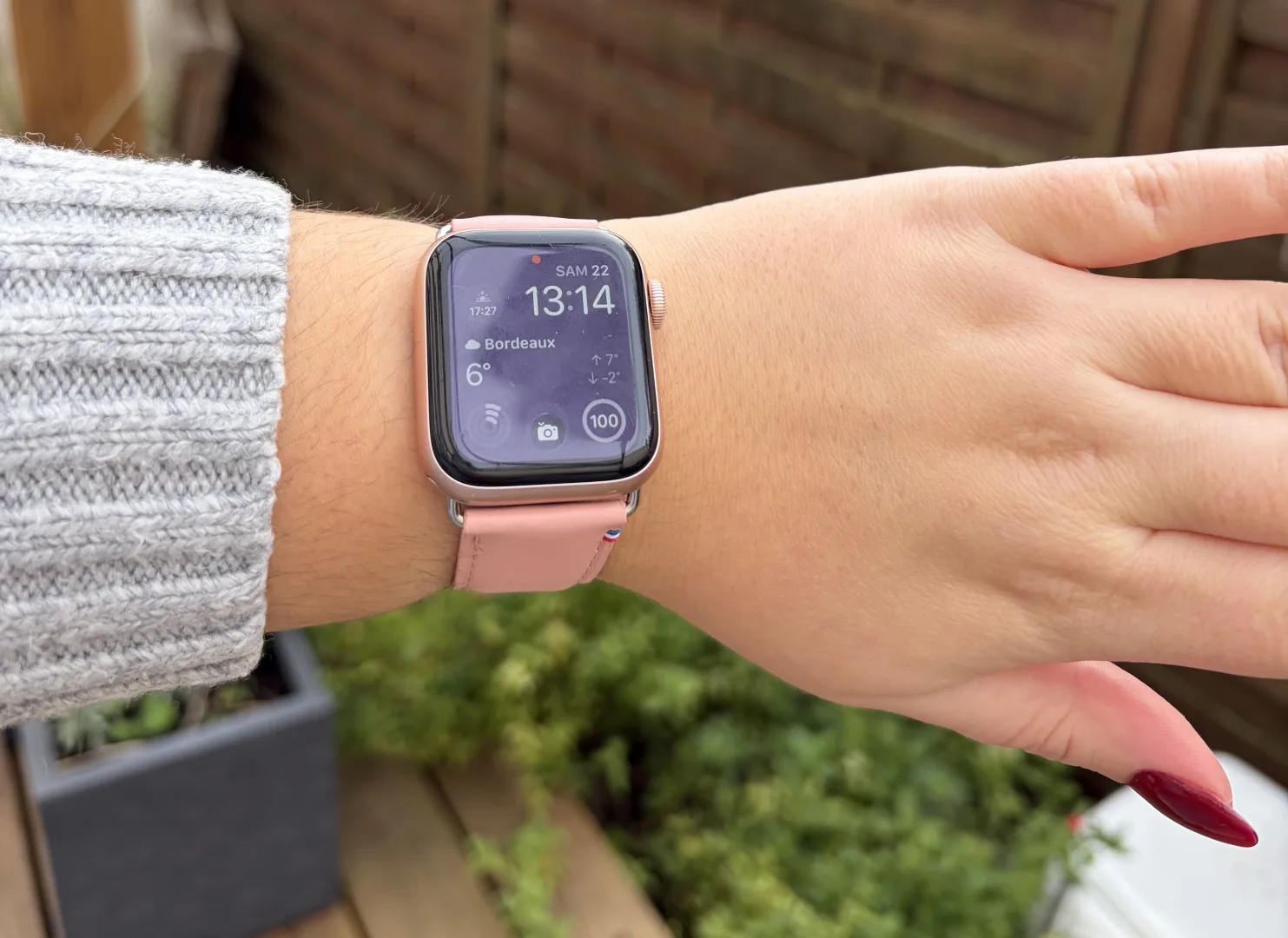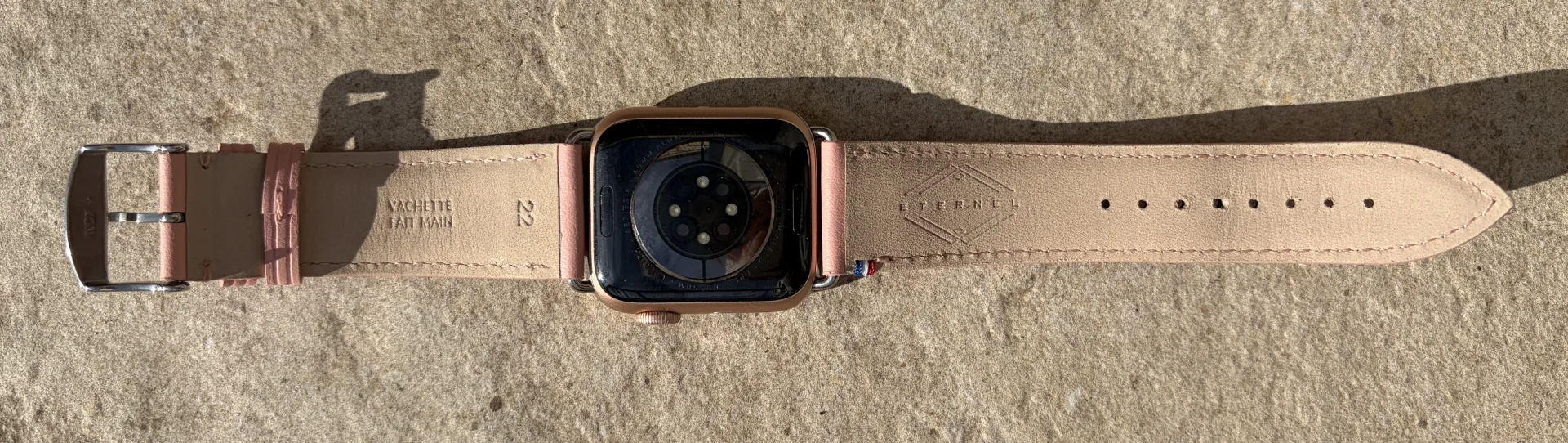 Les bracelets Apple Watch Eternel ont été exposés à des éclaboussures, de la pluie et de la transpiration lors d’activités quotidiennes. Sur une période de trois semaines, aucune altération visible n’a été constatée. Le traitement déperlant appliqué au cuir remplit efficacement sa fonction, laissant les gouttelettes d’eau perler à la surface sans pénétrer dans les fibres.