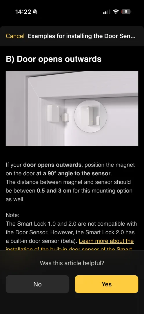 La réactivité est excellente. Chaque ouverture ou fermeture se reflète dans l’application en moins d’une seconde. Cette rapidité provient de la communication directe en Bluetooth entre le Door Sensor et la serrure.