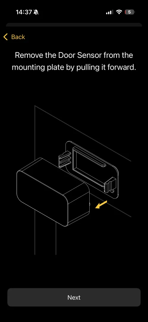 Vous pouvez recalibrer le capteur à tout moment depuis l’application. Rendez-vous dans les paramètres de l’accessoire, sélectionnez « Calibrate Nuki Door Sensor », puis suivez les instructions en ouvrant et fermant votre porte. L’opération prend moins d’une minute.