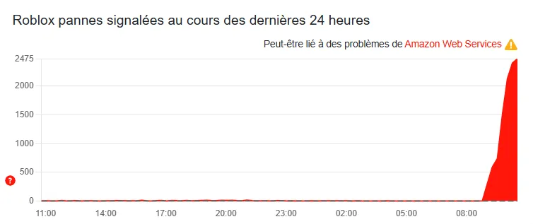 Sur le site Downdectetor, près de 2 500 joueurs de Roblox signalent des pannes sur le jeu. Les problèmes rencontrés sont multiples : impossible de se connecter, peu importe le serveur et par extension, impossible de jouer. Quelle que soit la plateforme, quelque soit l’endroit dans le monde.
