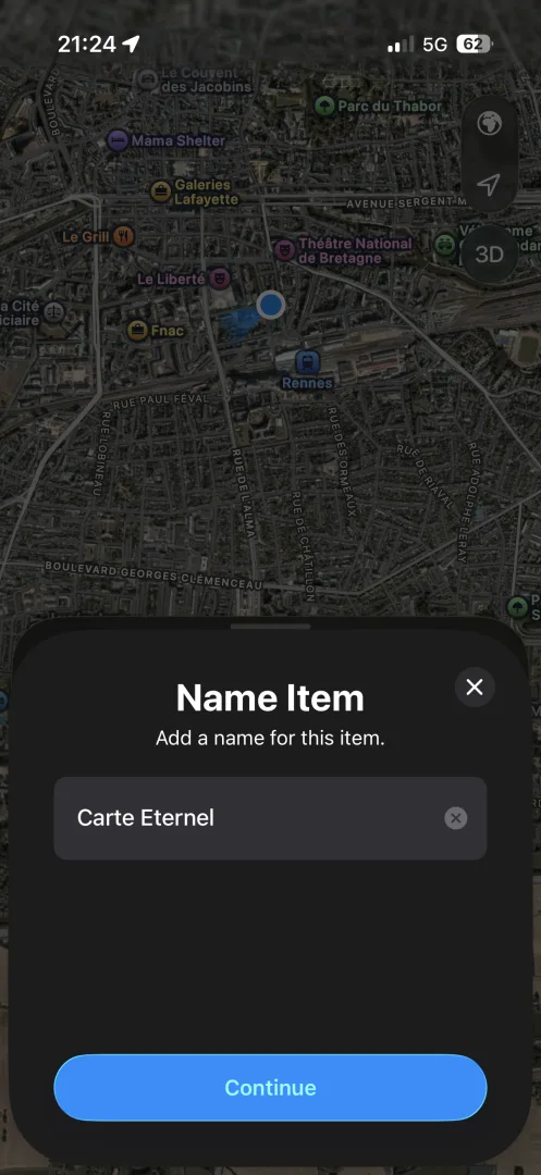 Une fois configurée, la carte de localisation Eternel propose plusieurs fonctionnalités accessibles directement depuis l’application Localiser d’Apple. La localisation s’affiche sur une carte interactive, permettant de visualiser la position de vos objets en temps réel. Cette fonction s’appuie sur le réseau Find My d’Apple, composé de centaines de millions d’appareils dans le monde qui relaient anonymement les signaux Bluetooth.