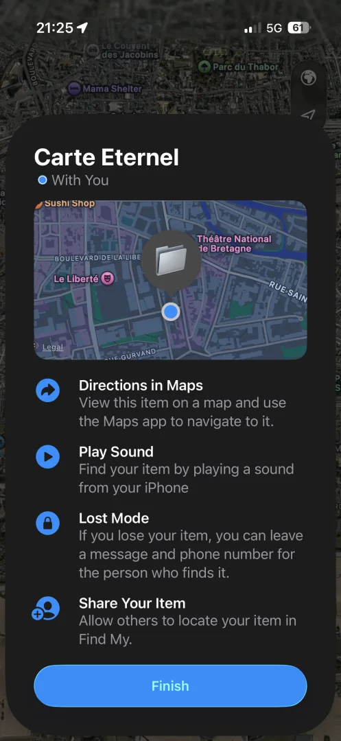 Carte de localisation Eternel : test du tracker ultra-fin compatible Apple Find My