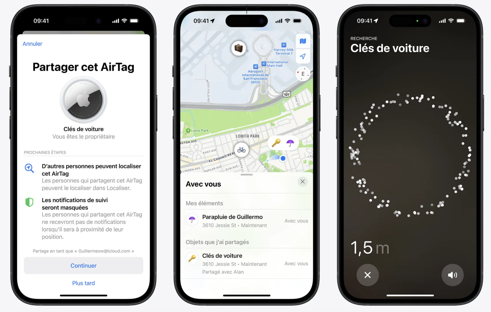 La fonction de partage familial autorise d’autres utilisateurs Apple à localiser votre carte, pratique pour des objets partagés ou pour permettre à un proche de vous aider dans vos recherches. Toutes ces fonctionnalités respectent les standards de confidentialité d’Apple, avec un chiffrement de bout en bout des données de localisation.
