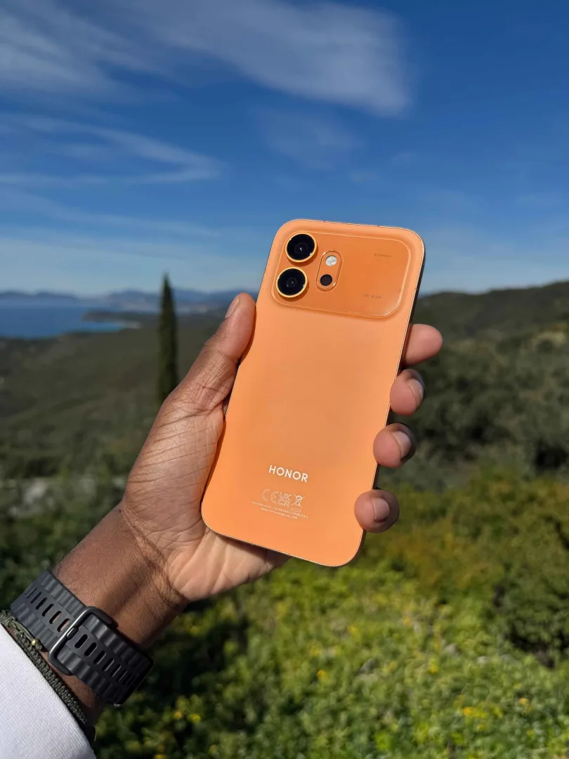 Honor assume totalement son inspiration d’Apple avec ses tranches plates en aluminium et son bloc photo. Mais la vraie prouesse est technique : avec seulement 7,8 mm d’épaisseur, il est très fin en main. Au quotidien, c’est un téléphone agréable à manipuler. Il se glisse facilement dans une poche, tient bien en main et inspire confiance lorsqu’on le sort pour répondre à un message ou prendre une photo rapidement. C’est le genre de design qui ne cherche pas à en faire trop, mais qui fonctionne parce qu’il est cohérent.