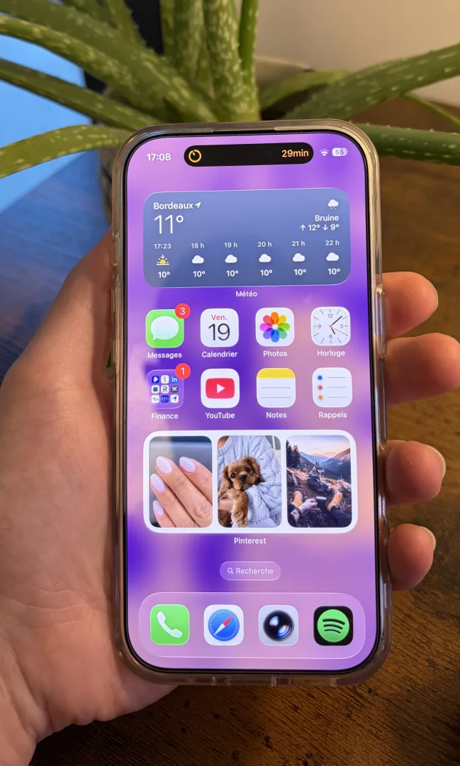 La Dynamic Island, présente sur ce modèle, se révèle être un véritable atout au quotidien. Cette encoche interactive transforme les notifications et les activités en cours en une expérience fluide et intuitive. Que ce soit pour suivre un minuteur, contrôler la musique ou consulter les indications GPS, cette fonctionnalité devient rapidement indispensable.